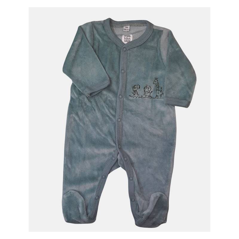 Le pyjama est en velours, c'est la matière à privilégier pour les premiers mois de bébé.
