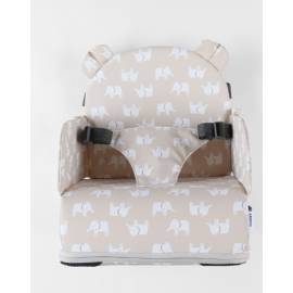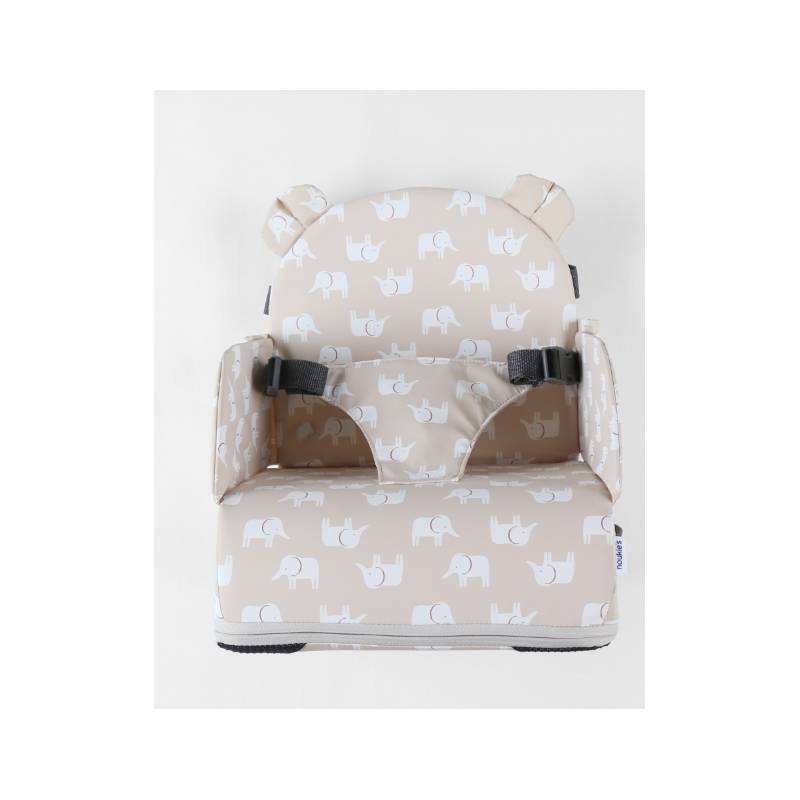 Le Rehausseur de Chaise Beige à Imprimé "Éléphants" de la marque Noukies permet à votre enfant de s’asseoir à la bonne hauteur pour les repas en toute sécurité et confort.