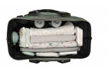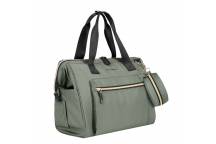 Design Élégant et Raffiné : Son coloris vert armée et ses finitions en satin apportent une touche de sophistication, parfaite pour les mamans qui recherchent un sac à langer chic et moderne.