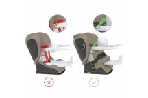 Le bouclier d'impact avancé aide à réduire considérablement le risque de blessures au cou en cas de collision frontale, avec des performances supérieures à cet égard par rapport à un système de harnais classique. Lors d'une collision frontale, l'enfant roule vers l'avant sur le bouclier d'impact qui agit de la même manière qu'un airbag en repartissant les forces d'impact sur une grande surface. Cela réduit la tension sur le cou et protège la tête de l’enfant.