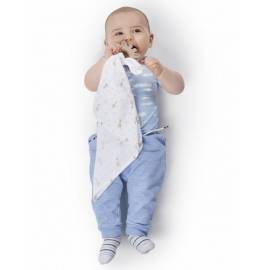 L’anneau de dentition est idéal pour soulager les gencives douloureuses de bébé pendant ses poussées dentaires. Quant au lange tout doux, accroché par un nœud à l’anneau, il apporte à bébé du confort et du réconfort.