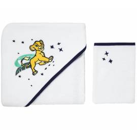 Une jolie parure de bain pour bébé en velours et éponge blanche Roi Lion Star par Little Band.