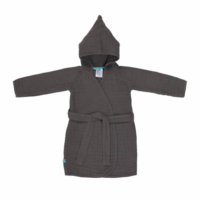 Le peignoir de bain pour enfant de LÄSSIG avec effet douceur : le peignoir "anthracite" prélavé double couche mousseline en 100 % coton est respirant et ainsi particulièrement doux pour la peau de bébé.