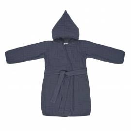 Le peignoir de bain pour enfant de LÄSSIG avec effet douceur : le peignoir "bleu marine" prélavé double couche mousseline en 100 % coton est respirant et ainsi particulièrement doux pour la peau de bébé.