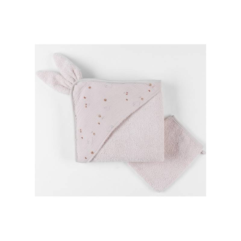 Accompagnée de son gant de toilette assorti, cette cape permet un séchage rapide et agréable tout en maintenant bébé bien au chaud grâce à la capuche intégrée.
