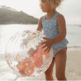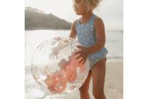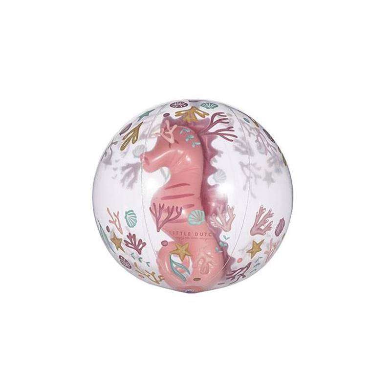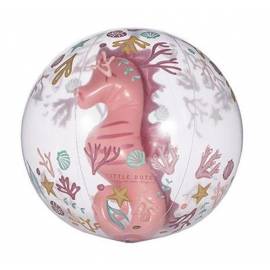 Ce ballon de plage se gonfle facilement et offre des heures de plaisir. À l'intérieur du ballon transparent se trouve un hippocampe.