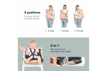 Le porte-bébé parfaitement adapté à la croissance de bébé. Innovant, il se transforme en réhausseur nomade.