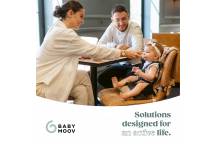 2-en-1, le porte bébé Babymoov se transforme en rehausseur grâce à un système breveté de sangles amovibles et un coussin gonflable.