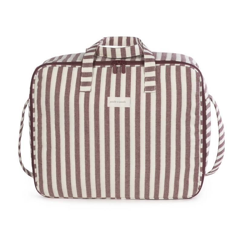 La valise maternité Cherry Raye de Pasito a Pasito se distingue par son velours 100 % coton au toucher doux et son design délicat. Son traitement imperméable protège efficacement son contenu, assurant une utilisation durable au quotidien.