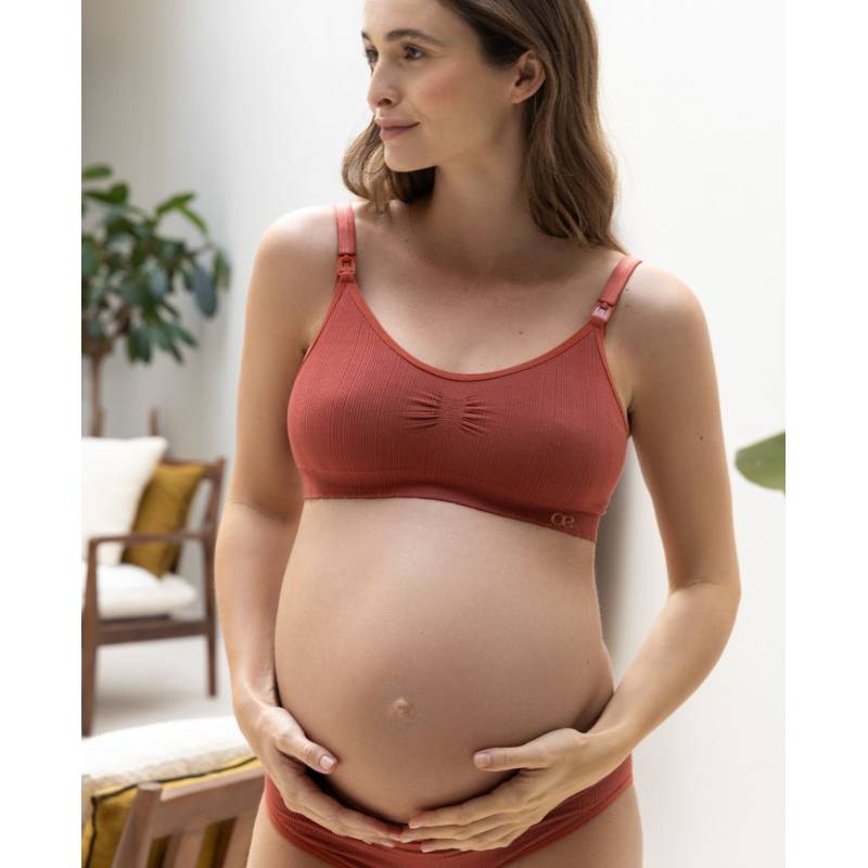 Découvrez la brassière ZOE en couleur terracotta, un incontournable de la marque cache coeur, spécialement conçue pour offrir un confort optimal et un