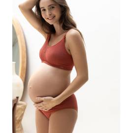 Découvrez la brassière ZOE en couleur terracotta, un incontournable de la marque cache coeur, spécialement conçue pour offrir un confort optimal et un