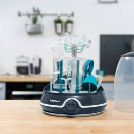 Le stérilisateur 2 en 1 Turbo pure de la marque Babymoov est le seul stérilisateur qui vous permet également de sécher les biberons de votre enfant dans un environnement stérile, et ainsi éliminer 99% des bactéries.