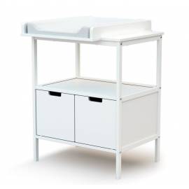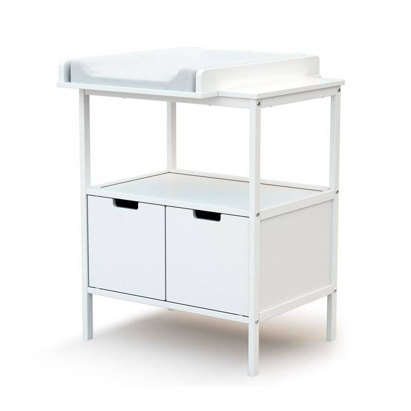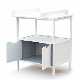 Un meuble à langer moderne et pratique : avec une large étagère ouverte en partie haute et 2 portes pour fermer la partie basse, il présente un espace de rangement ergonomique.