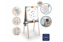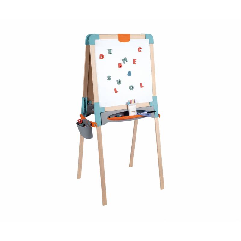 Le tableau en bois Smoby offre de nombreuses possibilités de jeu grâce à ses deux différentes faces : une face craie et une face blanche magnétique.
