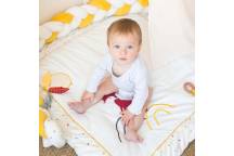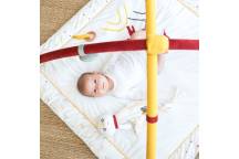 Matières douces et moelleuses, couleurs et motifs tendances, ce tapis et son arche d’éveil proposent pas moins de 30 activités sensorielles : miroir, anneau de dentition, hochet…
