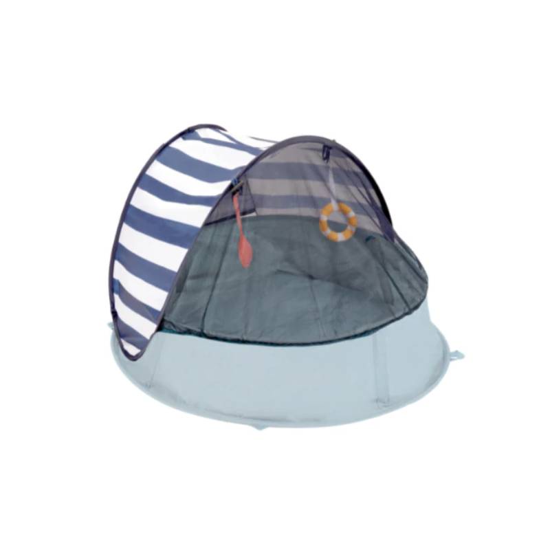 Ainsi, votre bébé découvre sans risque le monde qui l'entoure qu'il soit à la plage, au parc et même à la montagne. L'Aquani Marinière est une aire de jeux anti-UV qui protège votre bébé des rayons du soleil mais aussi du vent et du sable.