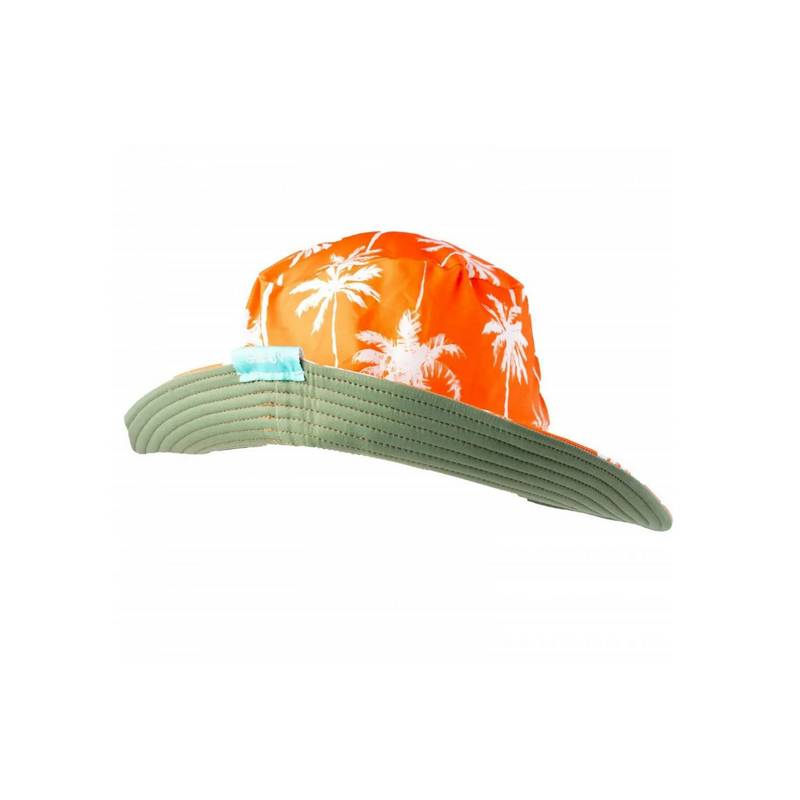 Son orange ultra tendance relevé par des motifs palmiers blancs est une sacrée réussite. Les bords à la forme travaillée assurent une protection parfaite contre les rayons UV. Gardez la tête froide mais succombez à ce chapeau anti-UV Indiana !