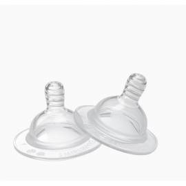 La valve anti-colique neutralise les coliques infantiles et entraîne un débit fluide. Pour offrir le bon soutien à l'enfant, la base de la tétine est en forme de globe et souple.