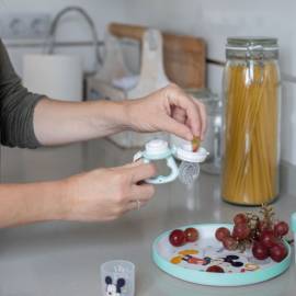 Elle permet à votre enfant de découvrir de nouveaux goûts et textures en toute sécurité. Dotée d'un couvercle de protection aux impuretés, elle prévient l'ingestion de particules indésirables tout en permettant à votre enfant de mordiller et sucer les aliments.