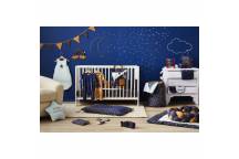 Ce tour de lit est composé de 10 éléments ouatinés à positionner autour des barreaux du lit grâce à des bandes auto-agrippantes afin d'éviter les chocs.