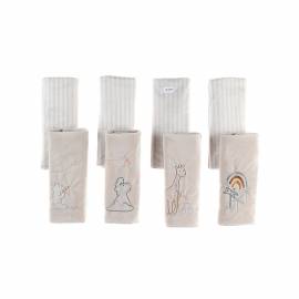 Placez-les sur les premiers barreaux près de la tête de bébé afin de le protéger. Fermeture par pattes auto-grippantes pour s'adapter à tous les lits bébés.