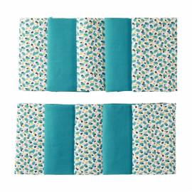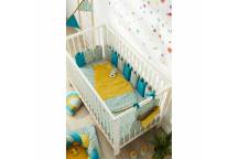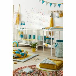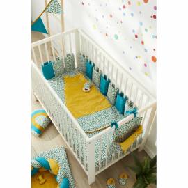 Ce tour de lit est composé de 10 éléments ouatinés à positionner autour des barreaux du lit grâce à des bandes auto-agrippantes afin d'éviter les chocs.