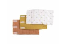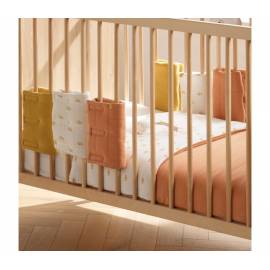Les protèges barreaux Sunlight aux motifs arc-en-ciel et aux couleurs écru/ocre sont parfaits pour s'adapter aux barreaux ronds ou plats de tous les lits et parcs bébés. Positionnez-les sur les barreaux près de la tête de bébé pour le protéger. La fermeture s'effectue par pattes auto agrippantes pour s'ajuster à tous les types lits et parcs bébés.