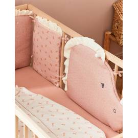 Le tour de lit et protège barreaux en mousseline avec notre Tricératops emblématique Popsie de la collection Popsie, Gigi & Louli garantit sécurité et douceur maximale à bébé grâce à son rembourrage. Il protège bébé des courants d’airs et lui évite de passer ses bras ou ses jambes à travers les barreaux.