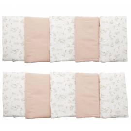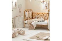 Ce tour de lit est composé de 10 éléments ouatinés à positionner autour des barreaux du lit grâce à des bandes auto-agrippantes afin d'éviter les chocs.