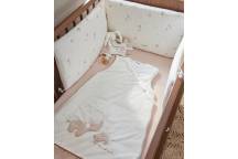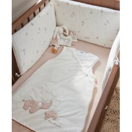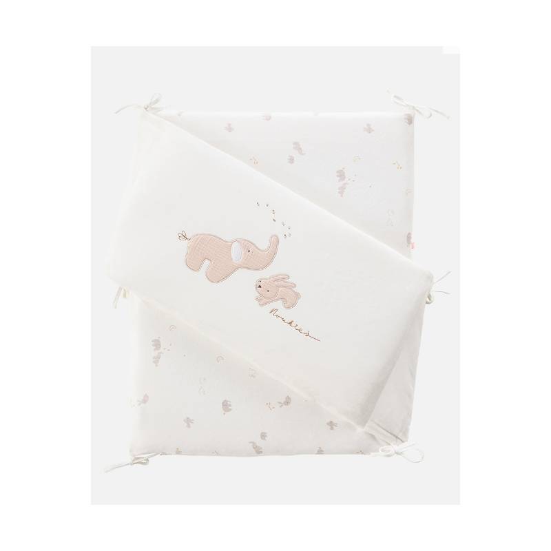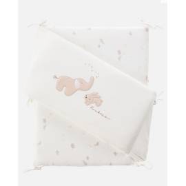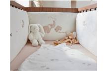 Protection et Sécurité : Ce tour de lit forme une barrière douce et rembourrée autour du lit de bébé, aidant à éviter les chocs contre les barreaux ainsi que les risques de coincement des bras ou des jambes.