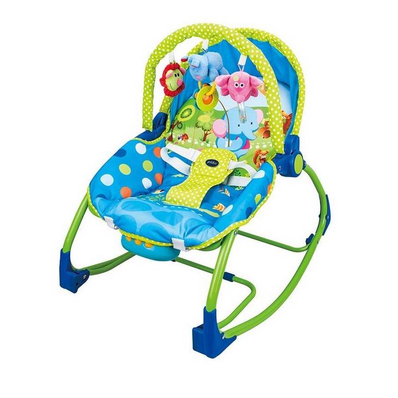 Le transat Bébé Évolutif, 2 modes : fixe ou à bascule. Avec musique et vibration pour calmer et bercer bébé.