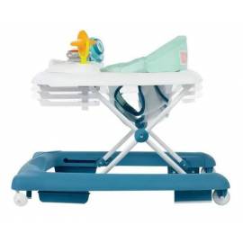 Une fois plié, le trotteur Explorer est facile à ranger dans les petits espaces grâce à sa compacité. Des patins antidérapants et un réducteur de vitesse rendent les déplacements plus sûrs.