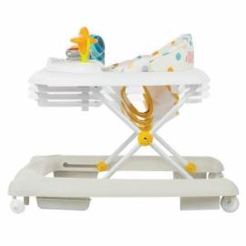 Une fois plié, le trotteur Explorer est facile à ranger dans les petits espaces grâce à sa compacité. Des patins antidérapants et un réducteur de vitesse rendent les déplacements plus sûrs.