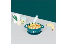 Avec sa ventouse antidérapante, le bol adhère à la table, ou à la tablette de sa chaise haute. Ergonomique et souple, la cuillère d'apprentissage est douce pour la bouche de votre bébé et l'aide dans le développement de sa motricité fine