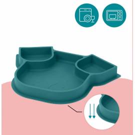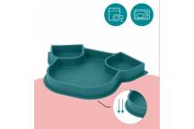 Grâce à sa base ventouse, l'assiette compartimentée ISY PLATE adhère à la table et à la majorité des tablettes des chaises hautes. L'assiette compartimentée permet donc de réduire le risque que votre tout petit renverse ou jette l'assiette.