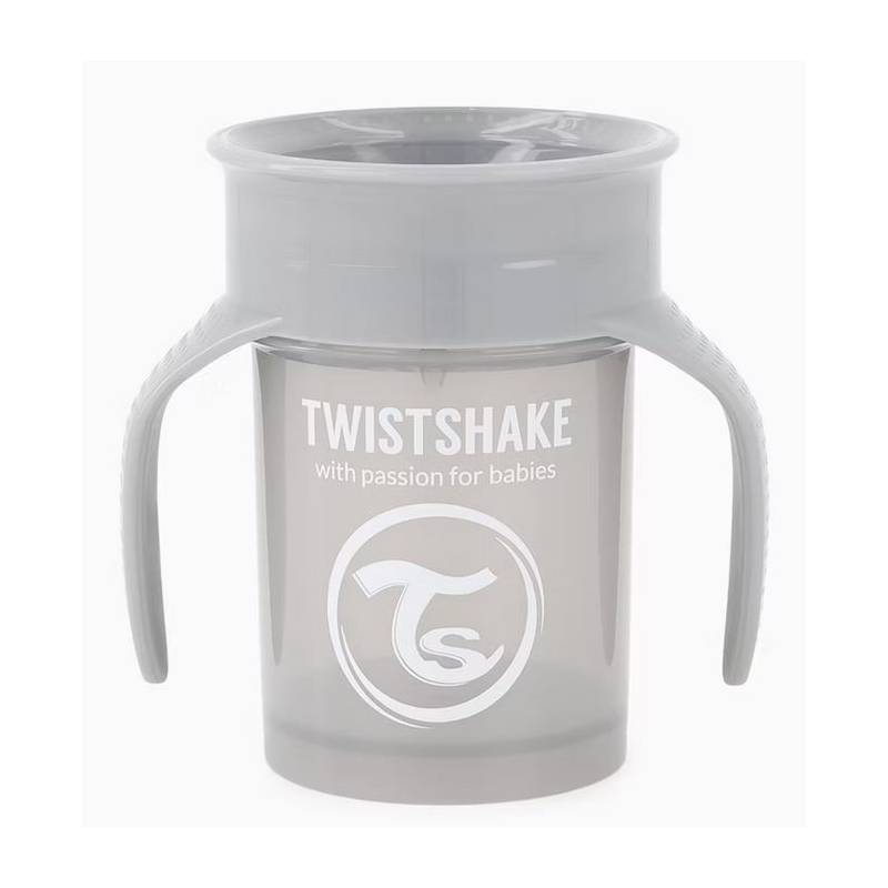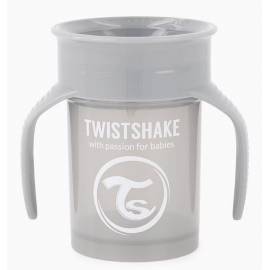 Twistshake 360 Cup est une tasse d'apprentissage pour jeunes enfants dotée d'un rebord permettant à l'enfant de boire depuis n'importe quel côté de la tasse sans renverser le contenu, comme avec un verre (d'où son nom 360 Cup). La 360 Cup est dotée d'un élément en silicone spécial qui empêche le contenu de se renverser même si la tasse est maintenue à l'envers.