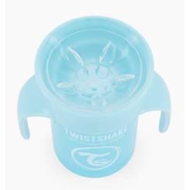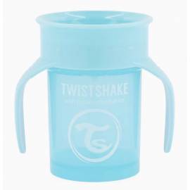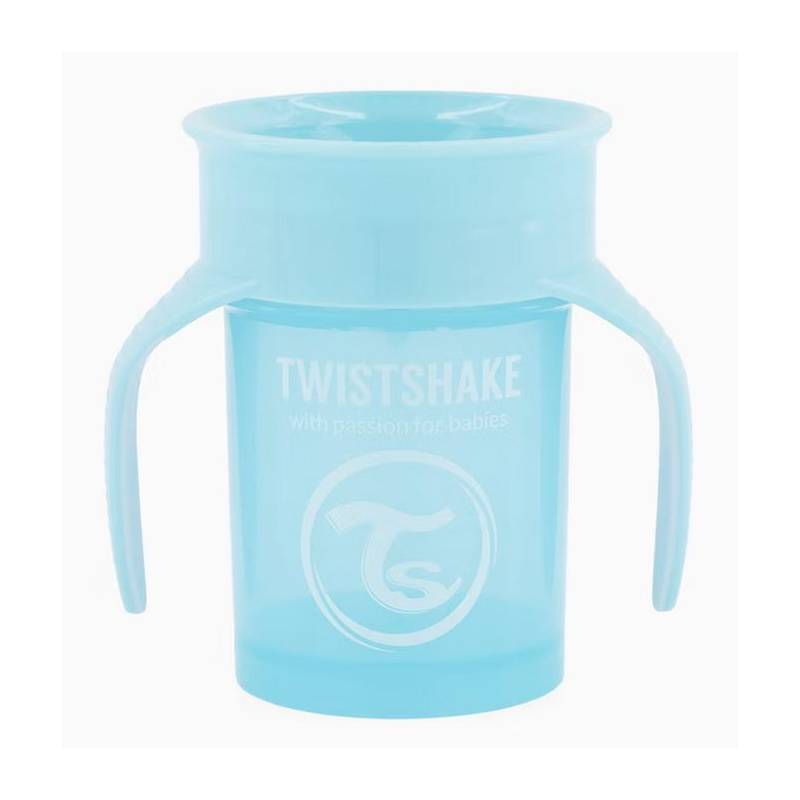 Twistshake 360 Cup est une tasse d'apprentissage pour jeunes enfants dotée d'un rebord permettant à l'enfant de boire depuis n'importe quel côté de la tasse sans renverser le contenu, comme avec un verre (d'où son nom 360 Cup). La 360 Cup est dotée d'un élément en silicone spécial qui empêche le contenu de se renverser même si la tasse est maintenue à l'envers.