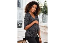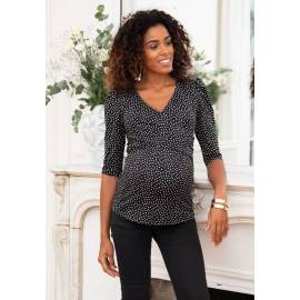 Vous allez adorer le joli décolleté cache-cœur de ce top de grossesse et ses manches trois-quarts délicatement froncées à l'épaule. La coupe prêt du corps de ce haut maternité met bien en valeur votre ventre et suit l'évolution de votre morphologie pendant les 9 mois de votre grossesse. Vous pourrez même porter ce top après la naissance de votre bébé, et l'allaiter, si vous le souhaitez, grâce à un discret système allaitement.