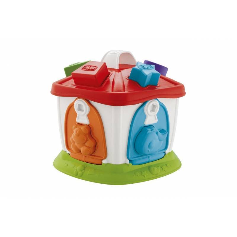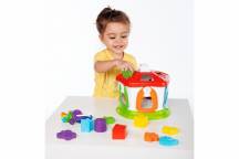 1. L'enfant commence par 5 formes géométriques, en trouvant les trous appropriés sur le toit.