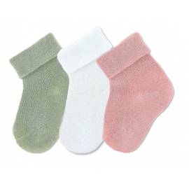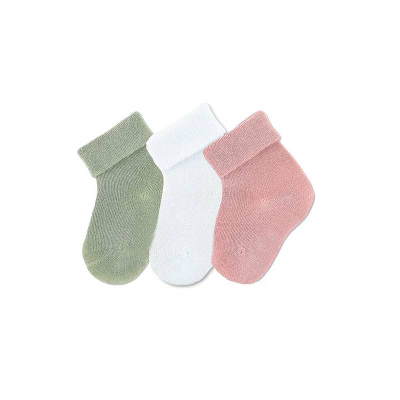 Lot de 3 Chaussettes Nouveau-Né Unis Rose/Vert/Blanc