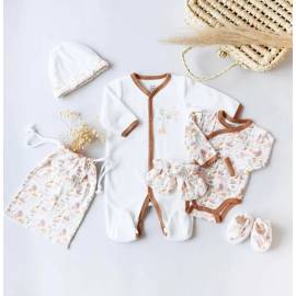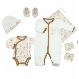 Le KIT NAISSANCE SAVANE - 0 M de la marque Trois Kilos Sept est un ensemble de vêtements et d'accessoires essentiels pour les premiers jours de