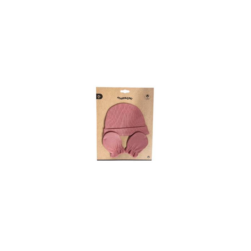 Ensemble doux et pratique pour les premiers jours de bébé, composé d’un bonnet et de moufles assorties.