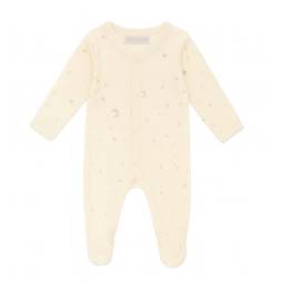 Ce pyjama à pieds pour bébé est confectionné dans une matière douce et respirante, idéale pour préserver le confort et la peau sensible de votre enfant. Avec son imprimé délicat de lunes et d’étoiles, il apporte une touche poétique et apaisante à la tenue de nuit.