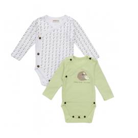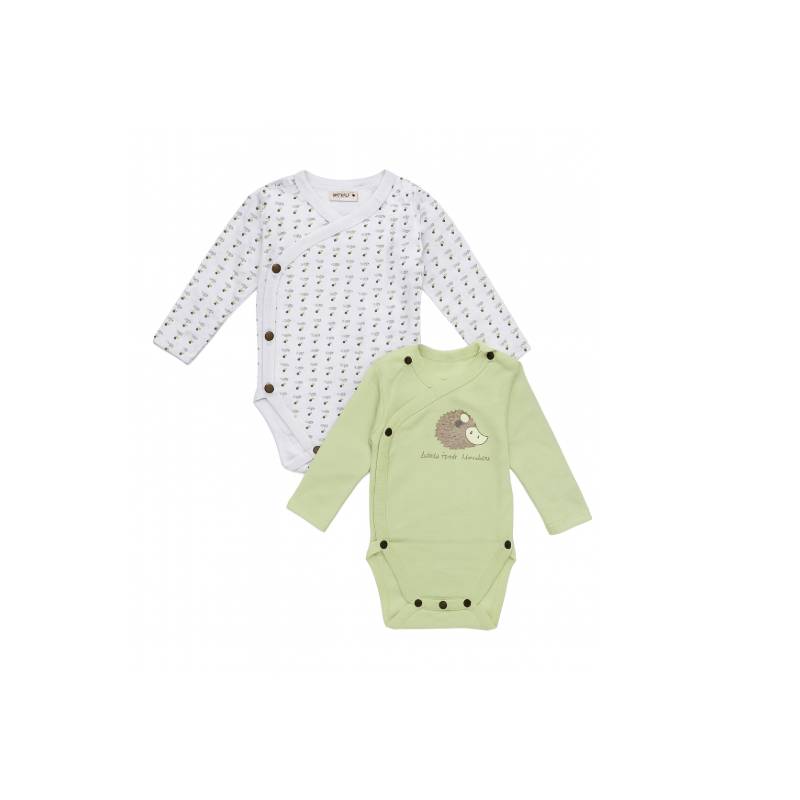 Le lot comprend un body vert clair orné d’un adorable hérisson avec l’inscription “Little Forest Adventure” et un body blanc imprimé de petits hérissons, pour varier les looks tout en restant craquant.