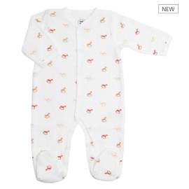 Ses teintes beige et terracotta apportent une touche moderne et délicate, tandis que son motif chevaux à bascule évoque un univers tendre et intemporel. Cette grenouillère allie charme, confort et praticité, ce qui en fait une pièce parfaite pour le quotidien ou un cadeau de naissance utile et raffiné.