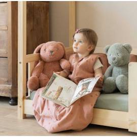 Son coloris terre de sienne, chaleureux et moderne, est sublimé par un délicat motif jacquard lapin, apportant une touche tendre et élégante à la chambre.