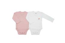 Ce lot de 2 bodies “Bouille Rose” est spécialement conçu pour les bébés âgés d’environ 1 mois. Parfaits dès les premières semaines, ils assurent un maintien confortable tout en respectant la peau délicate des nourrissons.