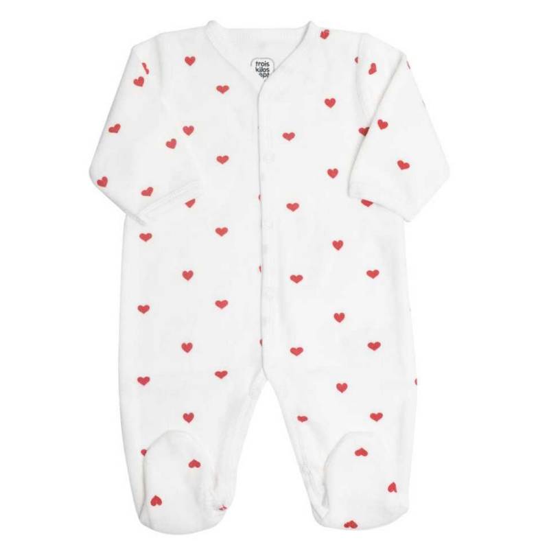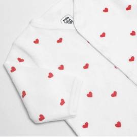 Les manches longues assurent une protection complète, idéale pour maintenir bébé bien au chaud. Son imprimé petits cœurs rouges apporte une touche tendre et joyeuse, parfaite pour une tenue à la fois mignonne et intemporelle.