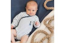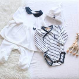 Fabriqué en coton doux et respirant, il respecte la peau fragile des nourrissons et assure un confort optimal tout au long de la journée. Les manches longues offrent une protection idéale dès la maternité, quelle que soit la saison.