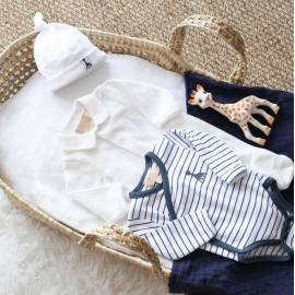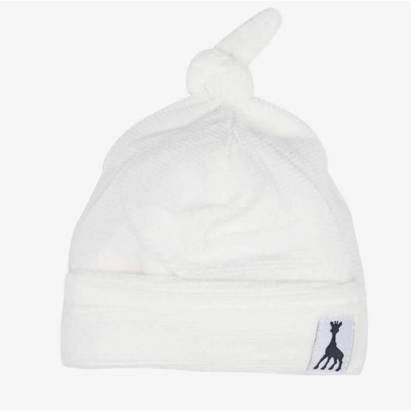 Entièrement blanc, ce modèle est sublimé par un petit nœud délicat sur le dessus ainsi qu’un écusson bleu Sophie la Girafe®, symbole d’une marque appréciée et reconnue par les parents.